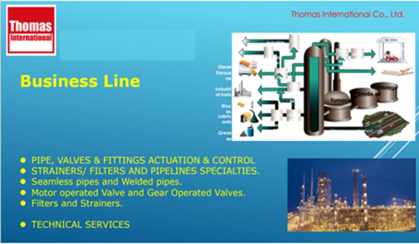 Energized Industrial Corp. is exclusive distributor of Thomas International Co. Ltd.to supply different products for Power plant, Industrial facility & vehicle and Maintenance & technical services.